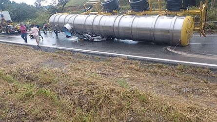 De acordo com testemunhas, o tanque de combustível teria se desprendido do caminhão e atingido o carro de passeio, um Tiggo de cor prata, onde estavam as vítimas. Três viaturas do Corpo de Bombeiros com 12 militares foram encaminhadas ao local para socorrer os envolvidos.