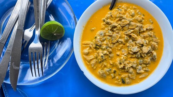 O massunim é um marisco encontrado no encontro entre mares, lagoas e rios. Vive enterrado na areia e é facilmente encontrado nas praias da região. A pesca é artesanal: na maré baixa, basta enterrar a mão na areia para recolher as conchinhas. Depois de bem limpas, vão para a água quente até abrir e, por fim, seguem para a panela com legumes e leite de coco. À mesa, pede limão, farinha e pimenta. Receita da felicidade.