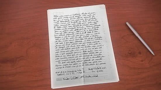 Em uma folha de caderno, a menina escreveu um texto de 30 linhas com a ajuda da irmã. A criança descreve no bilhete que os pais estão desempregados e que tem sete irmãos. "Estamos passando fome", diz.