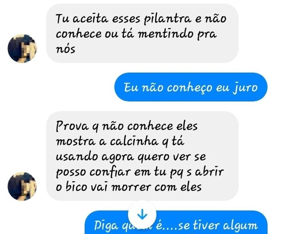 A menina negou conhecer pessoas ligadas a facções e, para provar, a pessoa pediu uma prova de confiança: uma foto da calcinha que a adolescente estava usando.