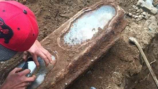 Durante as escavações, no entanto, os operários não encontraram ossos em decomposição, mas um pequeno caixão de metal, feito de chumbo e bronze.