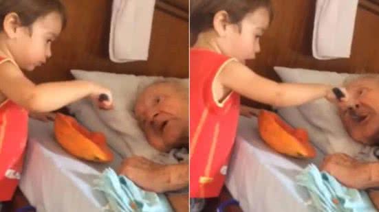 Você está preparado para ver o vídeo mais fofo do dia? Nele, com muita delicadeza, um menino alimenta seu avô acamado com mamão. Sem pressa, ele raspa a fruta com uma colher e dá na boca do idoso, enquanto imita o gesto “de abrir o bocão”.