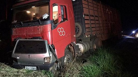 O acidente foi por volta de 23h, no km 7, depois da ponte do Rio Guaporé. De acordo com a polícia, o motorista do caminhão afirmou que viu o carro se aproximando na contramão e que tentou evitar a batida.
