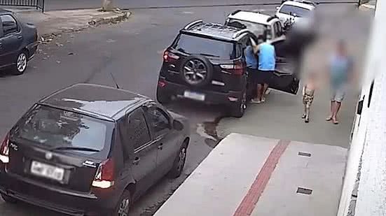 Na gravação, um outro carro vem pela rua e para ao lado do veículo estacionado. Um homem encapuzado desce e começa a disparar contra o que vestia camisa azul, que foge e passa próximo ao neto que caminhava com a avó. É nesse momento que o garoto é atingido.