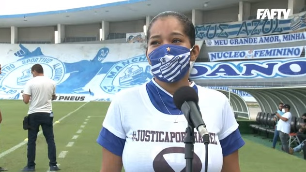 "Estamos muito abalados, não tenho nem palavras. A emoção de estar aqui é muito grande, porque era um sonho dele estar aqui no estádio, ele sonhava em ser jogador. Eu quis colocar ele em uma escolinha de futebol, mas ele só queria se fosse no CSA. O sonho do Rhaniel era um dia ser jogador do CSA. Creio que, onde ele estiver, ele está muito feliz, porque estamos aqui. Vamos pedir justiça por esse crime cruel que fizeram com meu filho".
