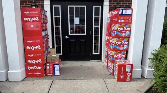 Um garotinho de 8 anos fez uma compra não autorizada de 70 mil pirulitos Dum-Dum usando o telefone celular da mãe. O incidente ocorreu no último fim de semana em Lexington, Kentucky (EUA). Holly LaFavers descobriu a situação ao encontrar 30 caixas do doce entregues em sua porta, totalizando aproximadamente US$ 4.200 (pouco mais de R$ 22.844).