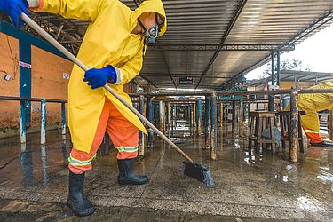 O mutirão é coordenado pela Secretaria Municipal de Trabalho, Abastecimento e Economia Solidária (Semtabes) e pelo Gabinete de Gestão Integrada para o Enfrentamento à Covid-19, e tem a participação das Secretarias de Desenvolvimento Sustentável, Infraestrutura, Assistência Social, Iluminação e Vigilância Sanitária.