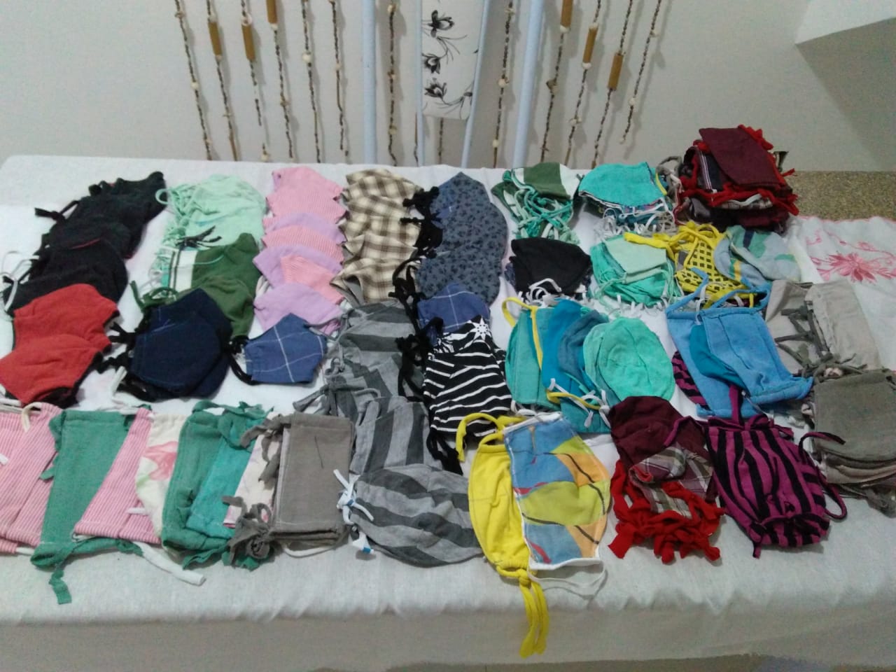 Para fazer as máscaras, Margarete usa roupas que são 100% de algodão, que sobraram de um projeto que a escola havia desenvolvido no ano passado. Como as roupas não foram suficientes para produzir a quantidade necessária de máscara para todos os alunos, ela, junto à gestão da escola, iniciaram uma campanha para arrecadar doações de roupas com tecido adequado para completar a produção.