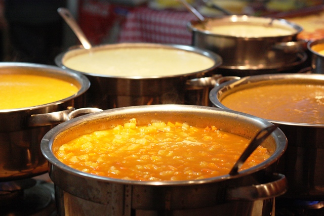 Sopas e caldos – R$ 14,90 (grande – 4 conchas)/ (meia- 2 conchas) R$ 9,90/ Aceita-se cartões