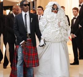 Rihanna e ASAP Rocky atrasaram mais entregaram. O look floral Valentino da cantora fez referência a Carmélia, flor simbolo da Chanel. Enquanto o visual do rapper, também fez homenageou Karl Lagerfeld.