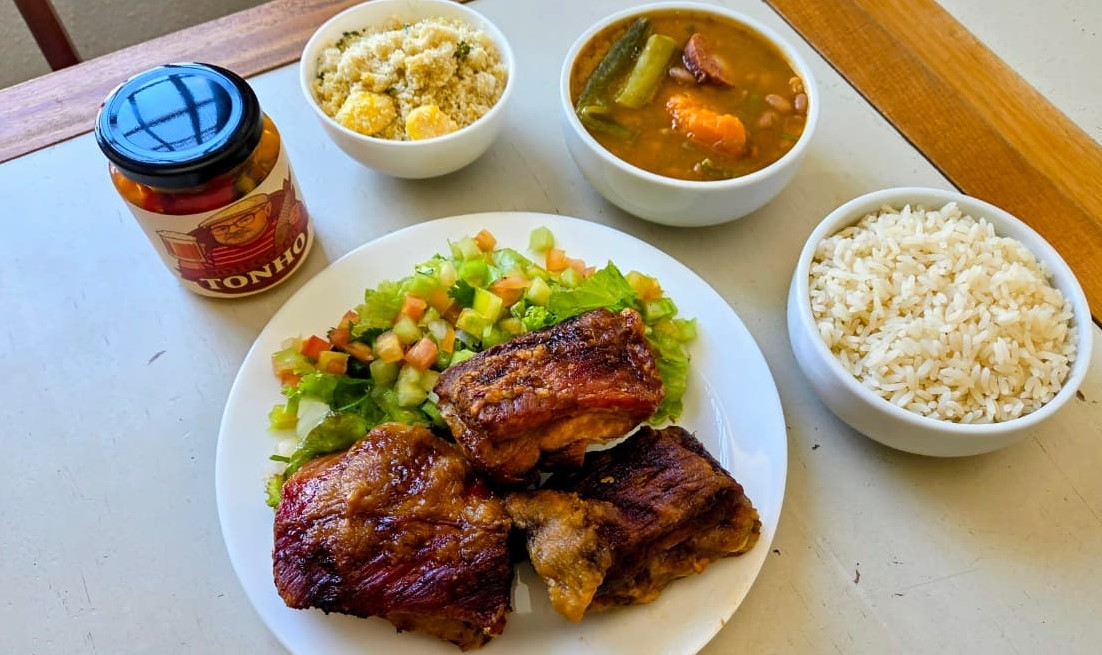 O segredo? O modo de fazer: forno no tempo certo e sal no ponto. E tem mais: a costelinha precisa ter gordura — senão, não é carne suína. É ela que garante o encanto do sabor.