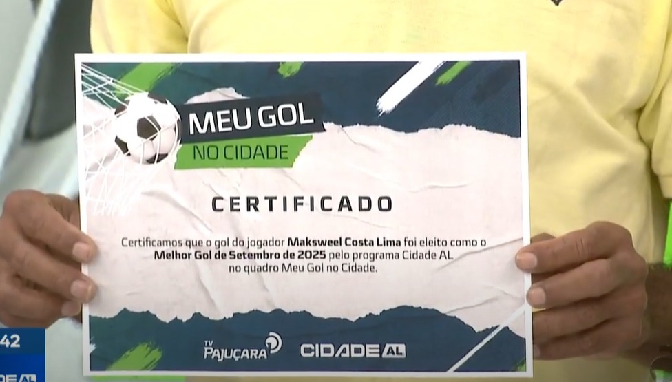 O prêmio de gol mais bonito de Alagoas no mês de setembro de 2025 tem dono! Maksweel Costa Lima foi o grande campeão do Meu Gol no Cidade AL, da TV Pajuçara/RECORD. O craque é natural de Coqueiro Seco, cidade da Região Metropolitana de Maceió, e protagonizou o lance durante um campeonato de futebol 7, uma variação do futebol realizada em campo society e com sete jogadores em cada time.