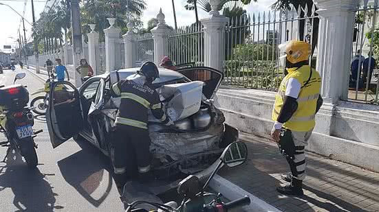 Os militares do Corpo de Bombeiros também ficaram responsáveis pela remoção das ferragens e dos botijões na mala do carro. Em nota, a Superintendência Municipal de Transportes e Trânsito (SMTT) confirmou que o micro-ônibus bateu em seis carros e duas motos.