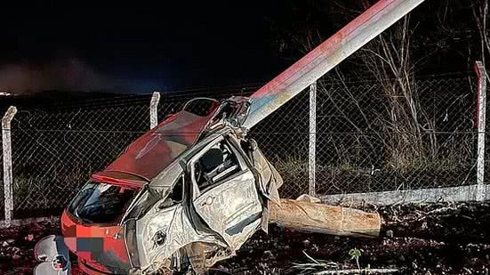 O acidente aconteceu por volta das 4h. Segundo os militares, a principal suspeita é que o motorista estaria em alta velocidade, teria batido contra o primeiro poste e, em seguida, colidiu contra a segunda estrutura. Com impacto da batida, o veículo partiu ao meio.