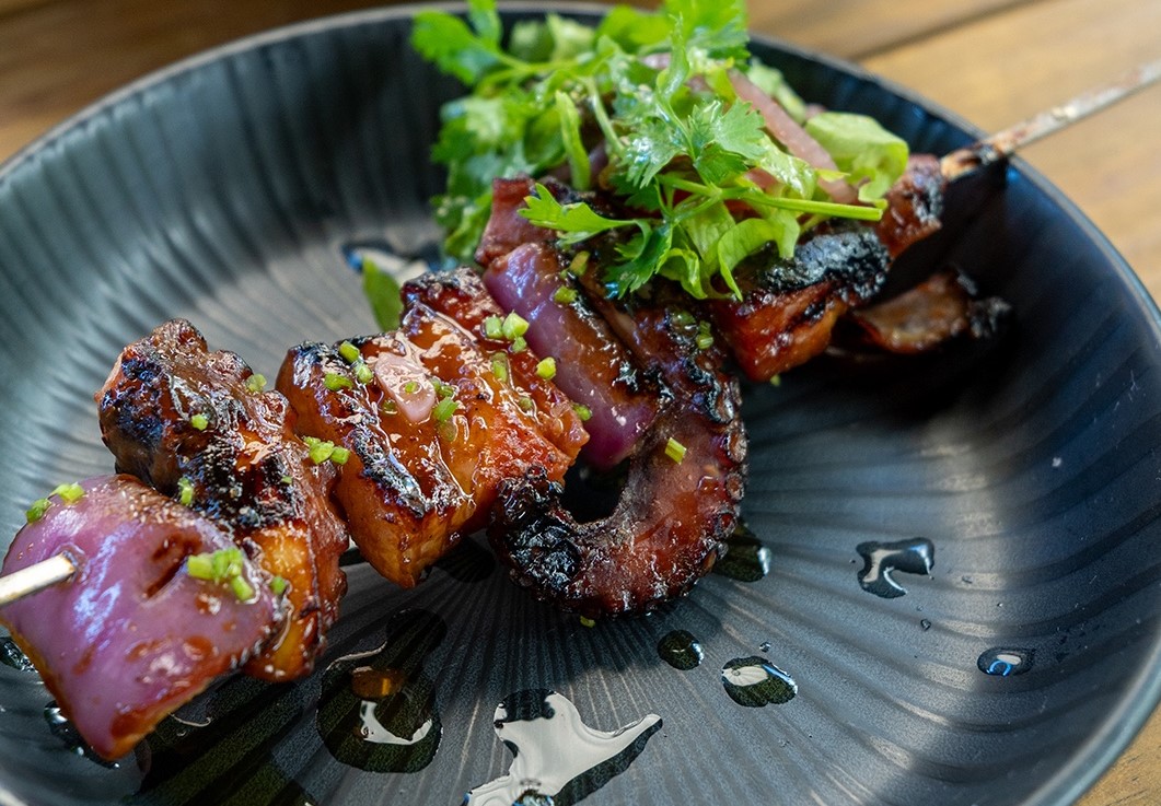 Como funciona o Menu Executivo do Mahr? De terça a sexta, das 12h às 16h, com entrada e prato principal no valor de R$ 89,00. O mingau pitinga é um dos pratos principais. De entrada, são duas opções para escolher uma: yakitori de polvo (espeto de polvo com bacon, sumisô, salada de verdes e talo de coentro) ou malfuf de massunim (charuto árabe de massunim, leite de coco, sour cream e sumac).