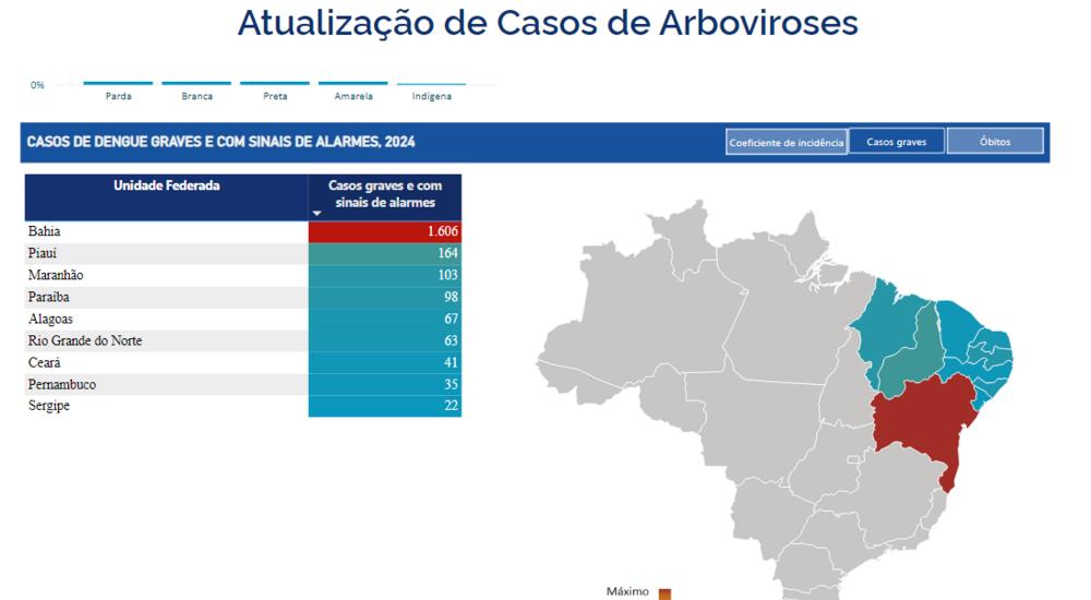 De acordo com o Ministério da Saúde, quatro óbitos estão sob investigação em Alagoas. O estado também registrou cerca de 5.077 casos prováveis da doença. Já o número de casos graves de dengue neste ano chegou a 67 em todo o estado.
