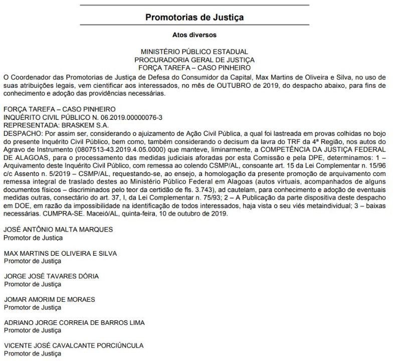 A medida é assinada pelos promotores Max Martins, que coordenava a ação, Jorge José Tavares Dória, Jomar Amorim de Moraes, Adriano Jorge Correia de Barros Lima, Vicente José Cavalcante Porciúncula e José Antônio Malta Marques.