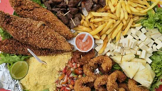 De onde surgiu a ideia de fazer o mistão, que, literalmente, bombou nas redes sociais e aumentou a legião de fãs? Galega respondeu: “Foi Deus!”. Ela tem sua barraca há oito anos, mas só começou a comercializar o mistão – que é um escândalo de bom – há um ano e meio. A posta de peixe, eu amei, suculenta; o camarão, grande, e ambas empanadas na farinha panko (pão), é bem crocante. O limão vem junto para atiçar o paladar. Batatinha, vinagrete e farofa são bons, e o abacaxi vale pela sobremesa.