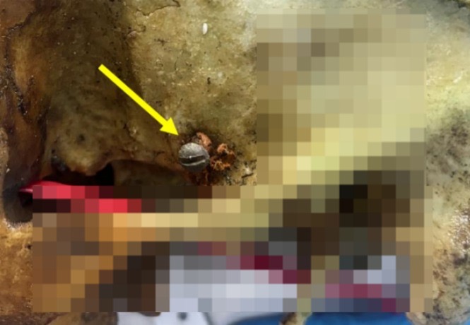 O perito esclareceu que encontrou parafusos oxidados e perfurações feitas por parafusos, além de uma mola presa à mandíbula, que serviria para articular essa estrutura óssea com o crânio. “Não há lesões cranianas evidentes que forneçam indícios da causa da morte. Os parafusos e perfurações encontradas indicam que o crânio pudesse estar sendo utilizado para algum tipo de estudo”, explicou o Dr. João Alfredo Guimarães, no laudo emitido após a conclusão do exame.