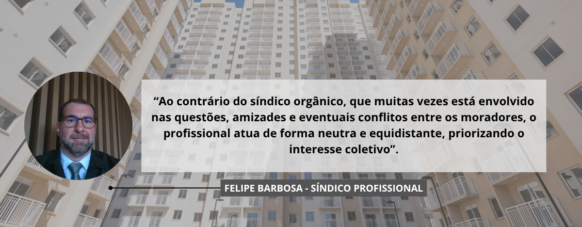 Formado em direito, Felipe Barbosa conhece de perto os desafios, responsabilidades e vantagens desse papel fundamental para o bom funcionamento de um condomínio.
