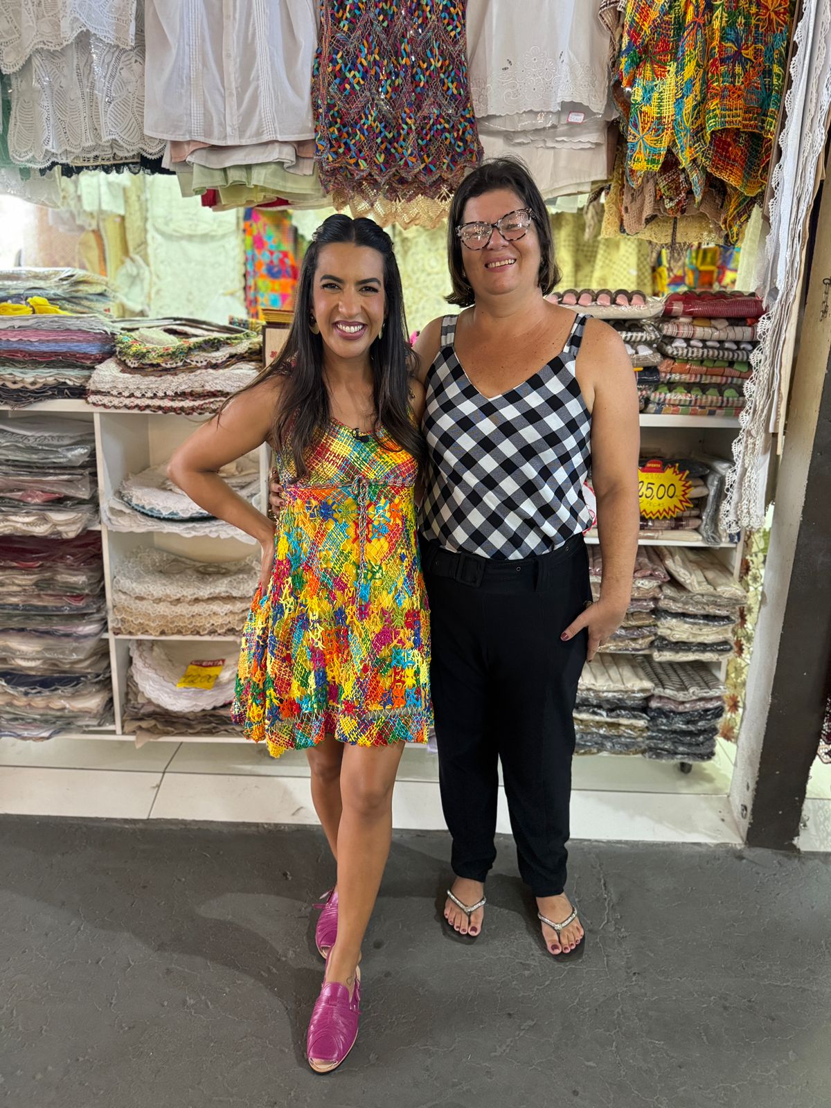 E foi justamente isso que eu fiz! Conheci histórias lindas das artistas e bordadeiras que por lá estão, o encanto da renda renascença feita bem aos meus olhos, e o capricho das peças em Filé, nosso patrimônio imaterial, e me vesti da cabeça aos pés com tudo que encontrei por lá.