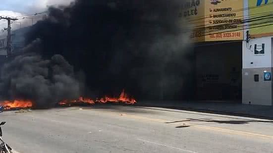 Eles atearam fogo a objetos, em frente a oficinas na avenida, para fechar o trânsito nos dois sentidos.