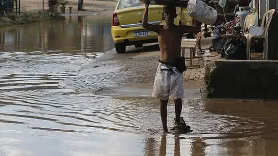 Em Belford Roxo, um dos municípios atingidos, Norma Pereira pegou emprestadas mesas de bar para apoiar as coisas que restaram depois da enchente para conseguir mantê-las no alto, caso a casa alague novamente.