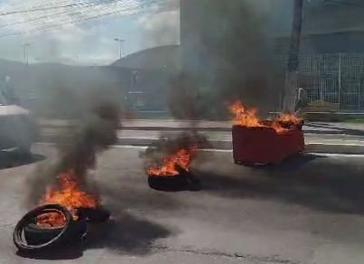 Eles atearam fogo em pneus e até em um sofá para bloquear a avenida. O protesto também congestionou o trânsito na região e uma longa fila de veículos se formou nos dois sentidos da via.