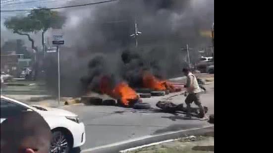 O grupo ateou fogo em pneus e pedaços de papelão para bloquear a passagem de veículos, o que tem causado congestionamento na região.