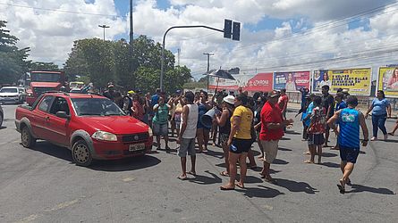 Moradores do Eustáquio Gomes, no Cidade Universitária, fecharam a BR-104, na entrada do conjunto, para protestar contra a falta de água na comunidade.