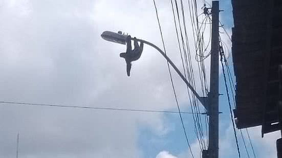 Um bicho-preguiça preso no alto de um poste de energia elétrica, na tarde desta segunda-feira (17), foi resgatado por moradores da Rua Marquês de Abrantes, no bairro do Bebedouro, em Maceió.