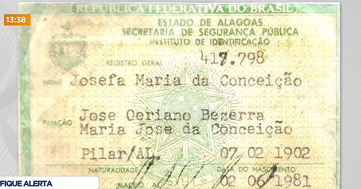 Morreu nesta segunda-feira, 27, na cidade de Pilar, dona Josefa Maria da Conceição aos 121 anos. Nascida no dia 7 de fevereiro de 1902, ela era a mulher mais idosa de Alagoas e estava sendo avaliada pelo Guinness Book para ser reconhecida como a mais velha do mundo. Em fevereiro do ano passado, a reportagem do programa Fique Alerta, da TV Pajuçara, foi até a residência de dona Josefa Maria.