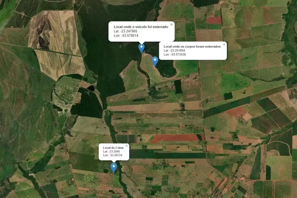 "Há imagens de câmeras de segurança que foram obtidas pela Polícia Civil que mostram o veículo Fiat Toro seguindo em direção ao local da cova logo após a execução, robustecendo a tese de que houve morte instantânea, seguida do enterro dos corpos e do veículo", diz a polícia.