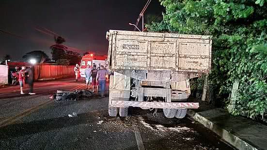A moto, uma Honda CG 150 Fan, ficou no meio da pista depois do acidente. A polícia informou que o condutor do caminhão não foi localizado.