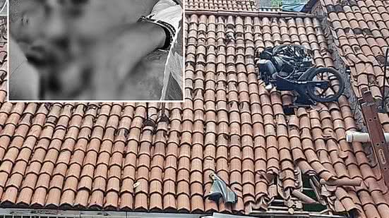 O condutor de uma moto, de modelo e placa não informados, ficou gravemente ferido após cair do veículo, que acabou em cima do telhado de uma casa. A identidade da vítima não foi informada.