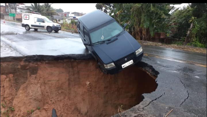 Uma cratera que se abriu em um trecho da BR 104, conhecido como Pista Velha, no município de Messias, a 32 quilômetros de Maceió, vem surpreendendo motoristas e provocando acidentes no local.
