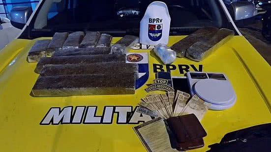 De acordo com informações do Batalhão Policial Rodoviário (BPRv), a mochila tinha 10 quilos de maconha (divididos em barras prensadas), meio quilo de crack e duas balanças de precisão. Com Edvan José da Silva também foram encontrados um celular de marca Sansung e R$ 950.
