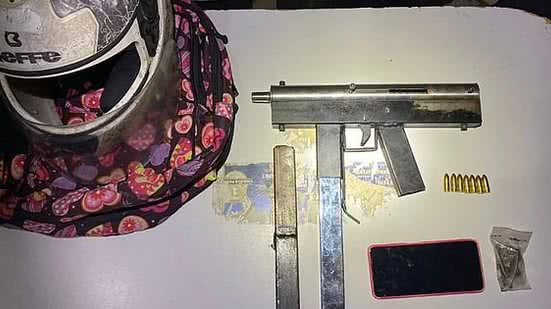 Foram recolhidos a submetralhadora artesanal de calibre 9 milímetros, sete munições, dois carregadores artesanais, e uma porção de 12 g de maconha. O celular e a mochila também foram apresentadas na delegacia.