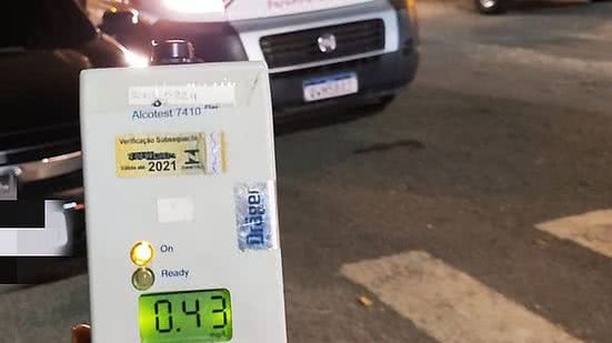 O primeiro teste de bafômetro indicou 0,43 mg/L de alcoolemia no condutor, de 34 anos, enquanto o segundo apontou 0,40 mg/L. O homem, que pilotava uma moto Yamaha XTZ 150, de cor azul, foi preso por embriaguez ao volante e encaminhado para a Central de Flagrantes, no bairro do Pinheiro, onde pagou fiança de um salário mínimo e foi liberado.