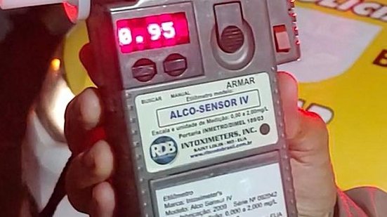 O homem foi abordado e convidado a fazer o teste de etilômetro. O primeiro resultado deu 1.08 mg/l, mas o condutor pediu um reteste, que foi feito após 15 minutos. Este segundo teste apontou o resultado de 0.95 mg/l.