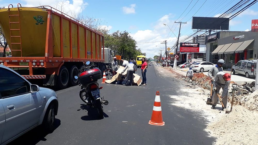 O acidente aconteceu próximo a uma área com obras e cones de trânsito foram colocados na pista para sinalizar o desvio para os motoristas que trafegavam pela região.