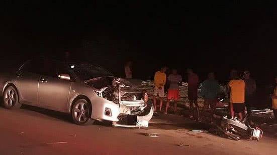 A moto Yamaha, com placa de Pernambuco, ficou destruída. Já o Corolla, placa de Alagoas, teve toda a frente danificada, porém o motorista não se feriu.