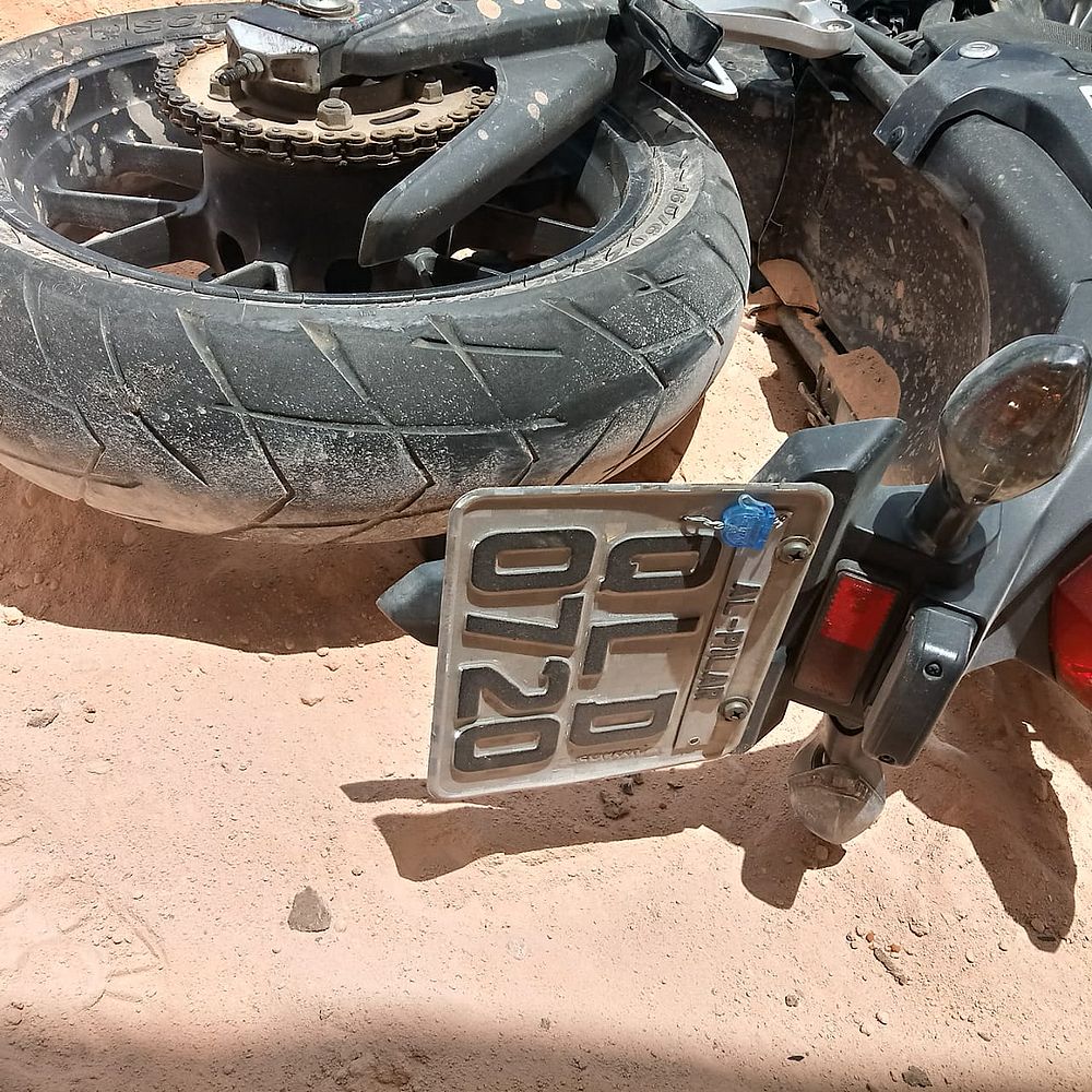 A motocicleta utilizada pelo homem, uma Honda, CB 500 X, de cor preta e placas QLD-0720, ficou parcialmente destruída.
