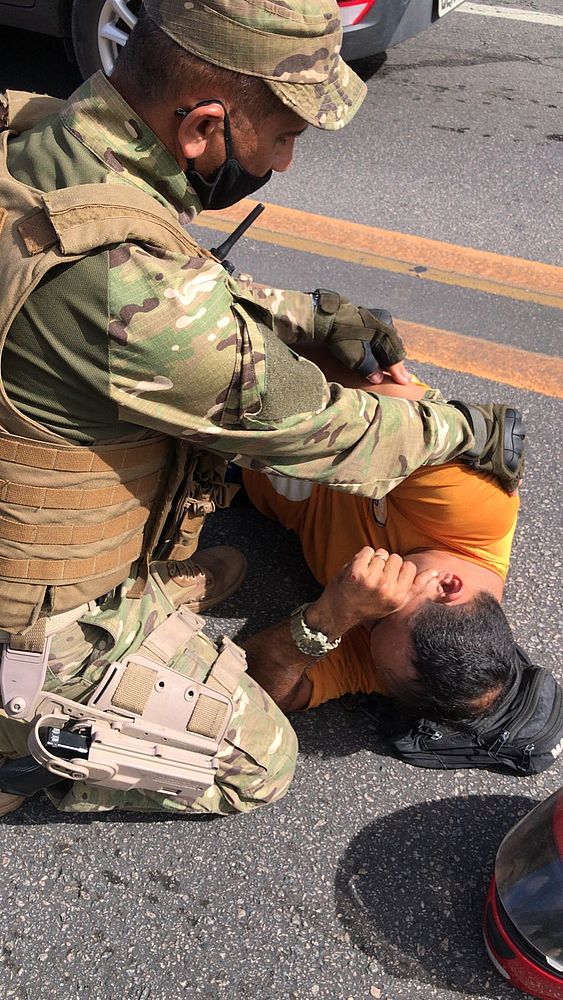Vítima sendo socorrida por militar enquando aguarda a chegada do Samu. Foto: Cortesia ao TNH1
