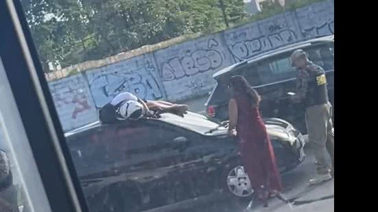 O acidente entre carro e moto, na Avenida Lourival de Melo Mota, no bairro Cidade Universitária, em Maceió, fez o motociclista parar em cima do automóvel na manhã desta quarta-feira (26). A vítima ferida foi atendida pelo Corpo de Bombeiros. A motorista do carro nada sofreu.