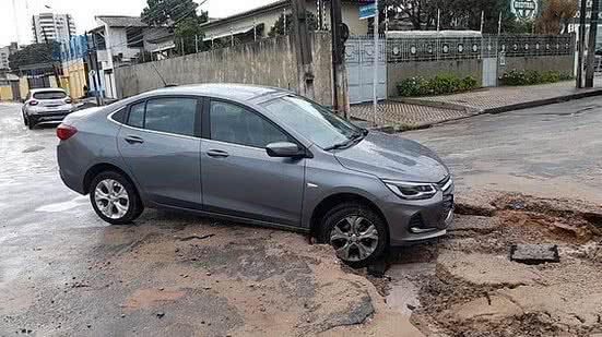 "Eu saí de casa mais cedo e quando passei por esse ponto, o asfalto cedeu, aí o carro caiu. Só tinha areia fofa e aí afundou. Um susto muito grande, ainda bem que estava devagar e sozinho no carro", contou o motorista à reportagem.