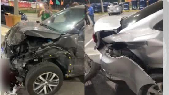Em imagens enviadas ao TNH1, é possível ver que um dos veículos invadiu uma loja, derrubou a porta de entrada e ficou com parte dianteira do veículo destruída. Além disso, o vídeo também mostra o estrago causado nos demais veículos atingidos. Confira:
