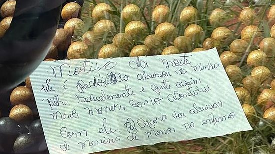 "Motivo da morte: ele é pedófilo, abusou da minha filha sexualmente e gente assim merece morrer, como aconteceu com ele. Agora vai abusar de menina de menor no inferno", diz.