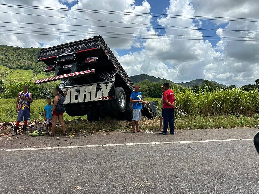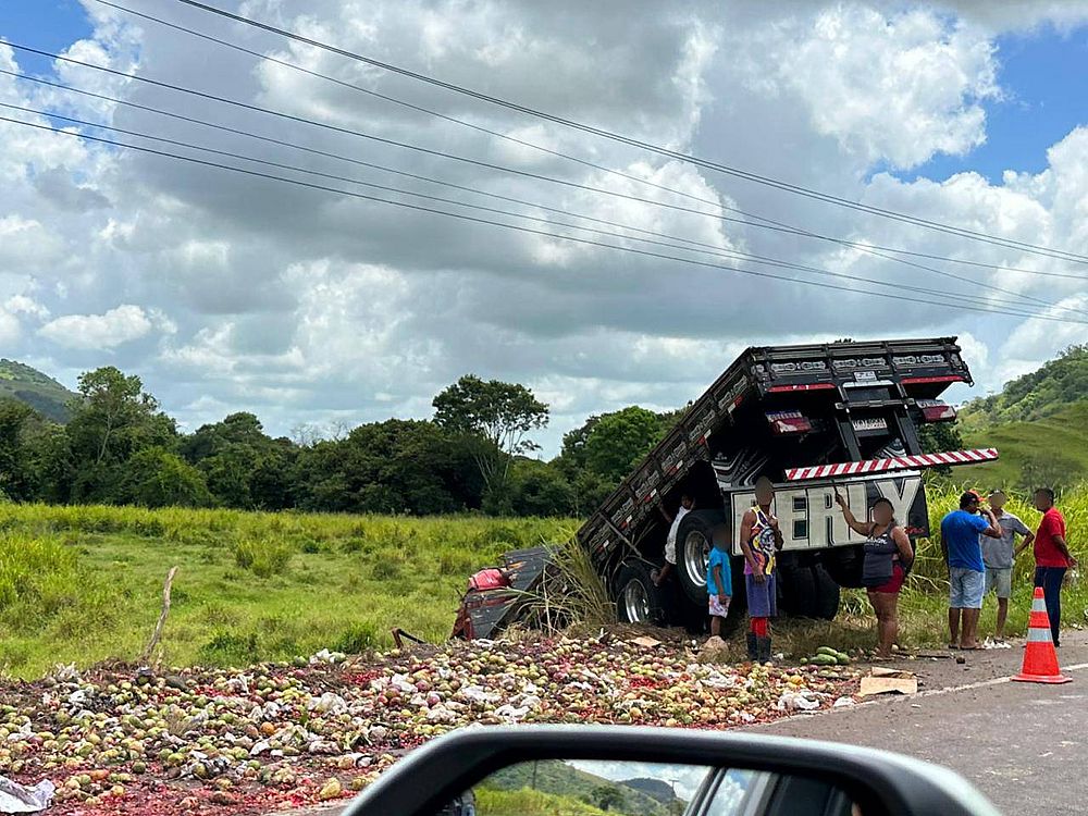 Ainda segundo a testemunha, parte da população que esteve no trecho do acidente saqueou a carga de frutas e verduras, que ficou espalhada devido ao acidente.