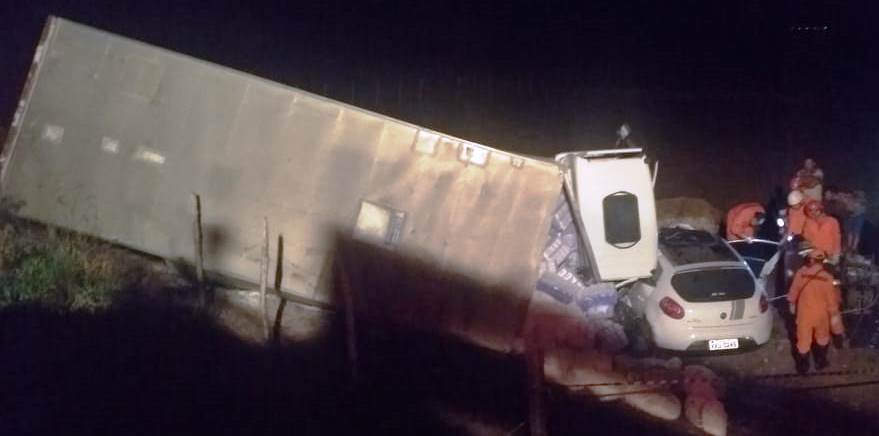 Um motorista morreu e outro ficou ferido na noite dessa terça-feira (27) em um acidente entre um carro e uma carreta carregada de farinha de trigo na AL-220, altura do Sítio Grota, em Girau do Ponciano, Agreste de Alagoas.